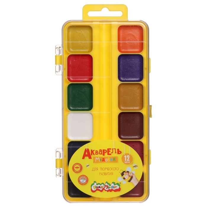 Акварель медовая «Каляка-Маляка», 12цв, без кисти, пластик