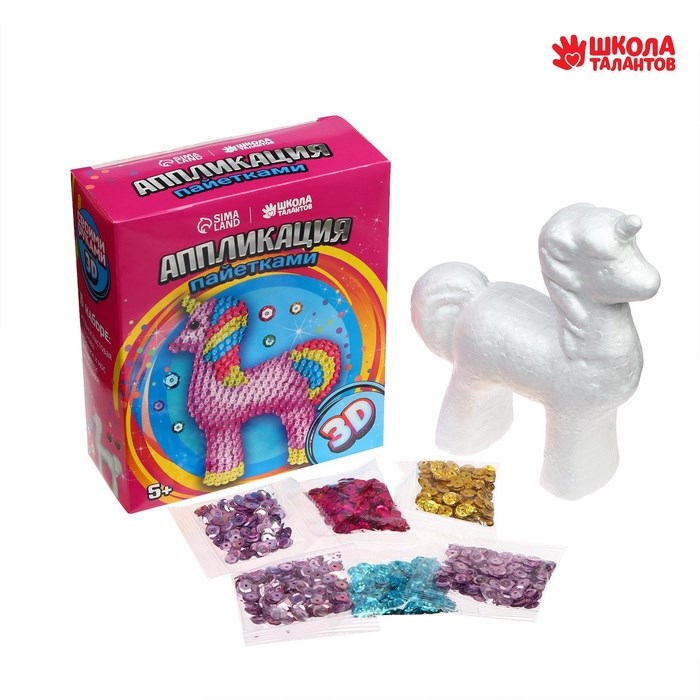 Аппликация пайетками д/детей «Волшебный единорог», н-р д/творчества