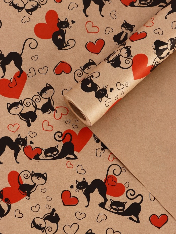 Бумага упаковочная крафт «Ля Мур», черный/красный, 0.72*10м, 60±5%гр