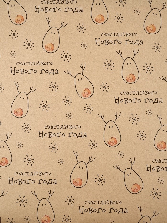 Бумага упаковочная крафтовая «Олени», 50*70см