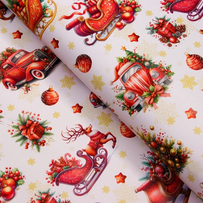 Бумага упаковочная «Новогодние сани», глянец, 1л, 80г/м², 70*100см
