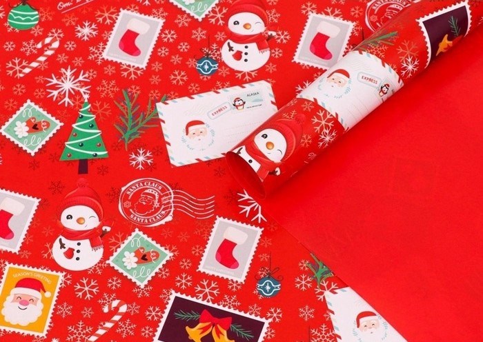 Бумага упаковочная новогодняя глянцевая «Рождественские подарки», двусторонняя, 70*100см
