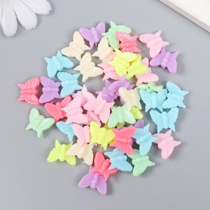 Бусины д/творчества пластик «Бабочки. Пастельные тона», н-р 41шт, 15гр, 1.3*1.5см