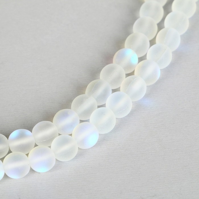 Бусины из натурального камня «Кошачий глаз», н-р 46шт, размер 1 шт 8мм, матовый белый