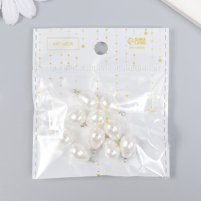 Декор д/творчества пластик «Жемчужина-капелька с петелькой» н-р 10шт 1.4*1см