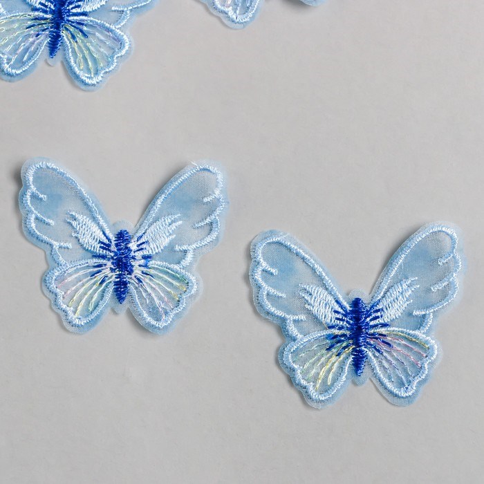 Декор д/творчества текстиль вышивка «Бабочка голубая», 4.7*5.5см 1шт