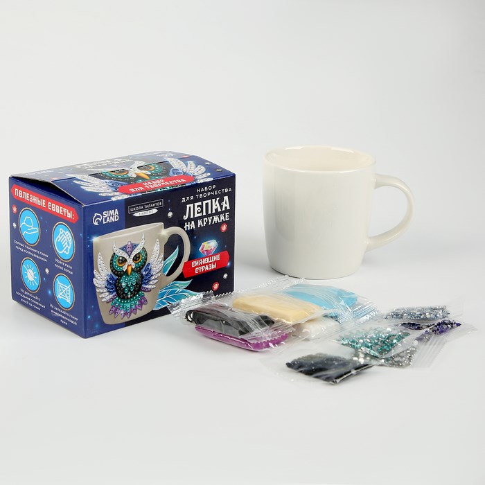 Декор кружки полимерной глиной. Лепка на кружке «Ночная сова», со стразами, н-р д/творчества