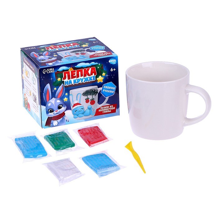 Декор кружки полимерной глиной на новый год «Голубой зайка», н-р д/творчества