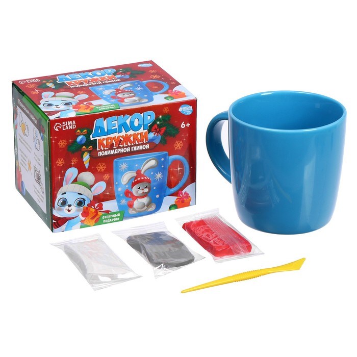 Декор кружки полимерной глиной на новый год «Зайка в шапочке», 300 мл, н-р д/творчества