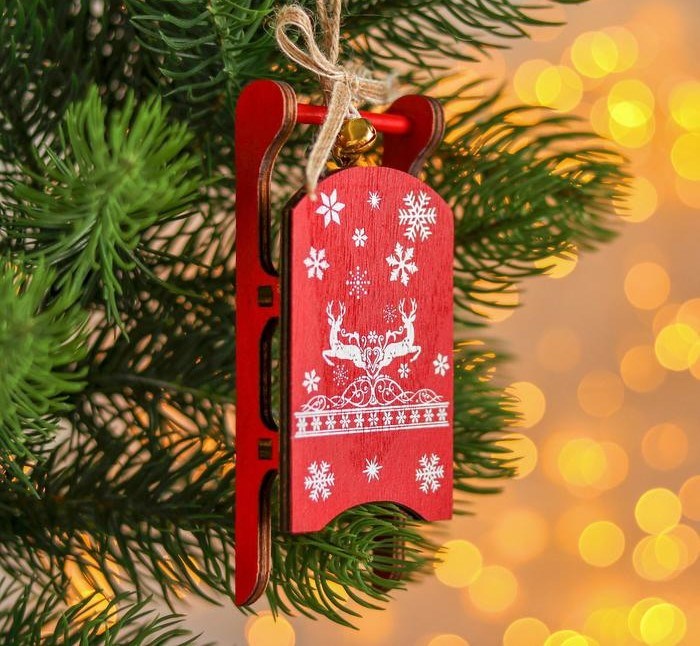 Елочная игрушка «Санки с узорами», 2.3*5.5*13см