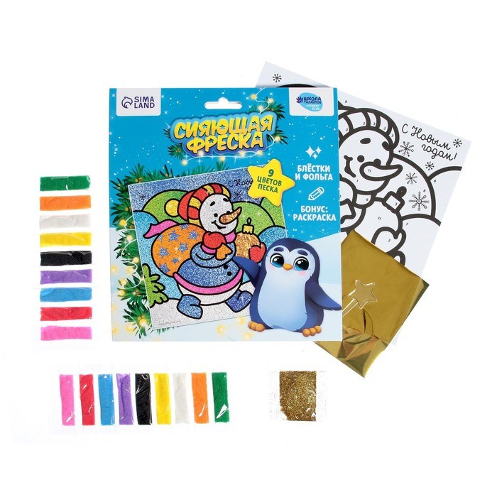 Фреска блёстками и фольгой на новый год «Снеговик», н-р д/творчества