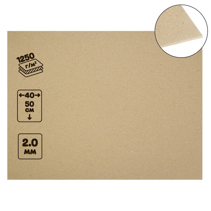 Картон переплетный 2мм 40*50см 1250г/м2 серый