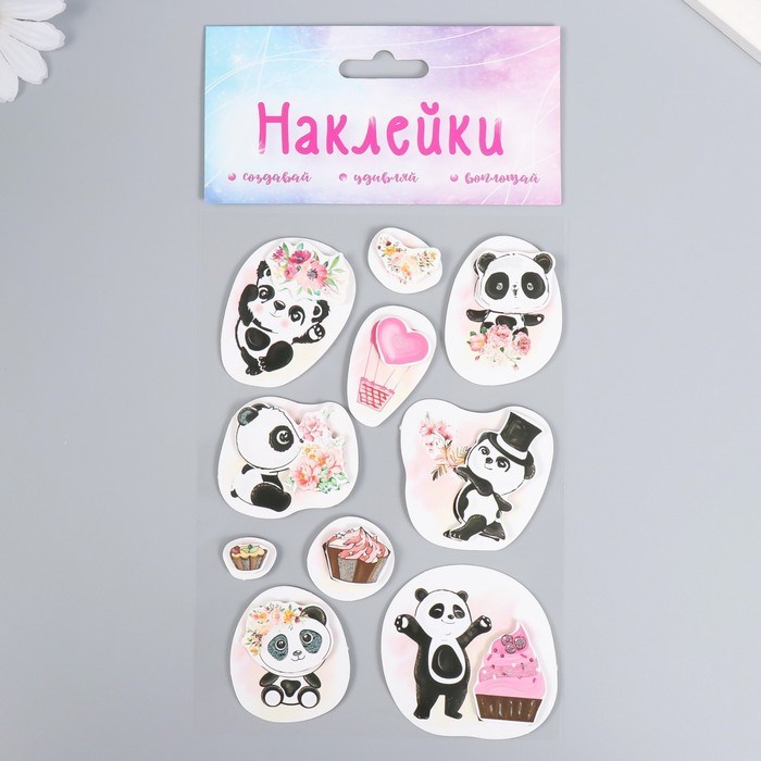 Картонные наклейки д/декора «Цветочные панды», 2 слоя, 17*12см