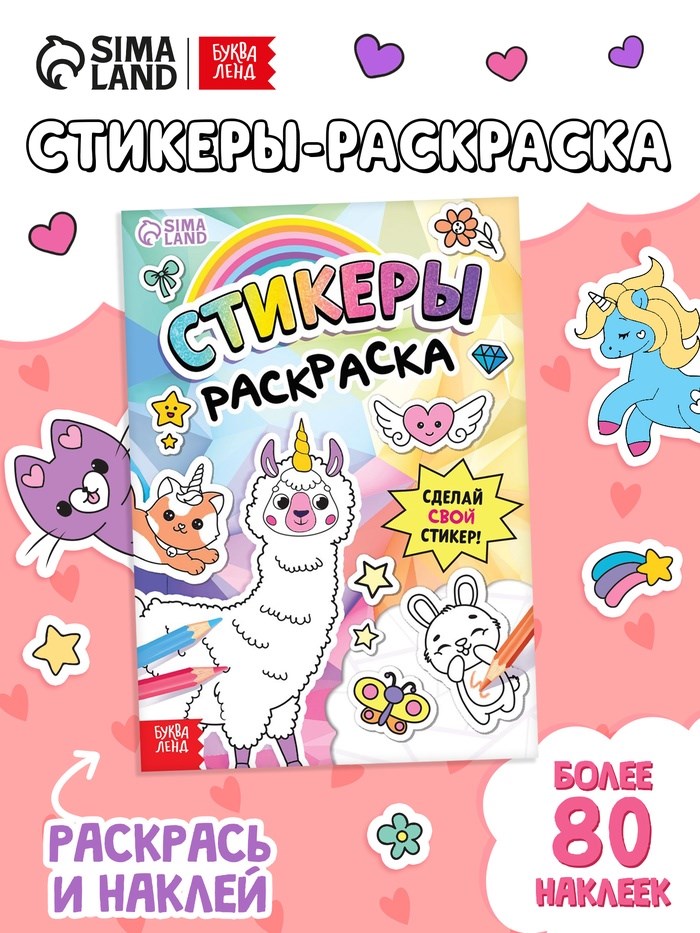 Книга «Стикеры раскраска. Сделай свой стикер!», 8стр, более 80 наклеек