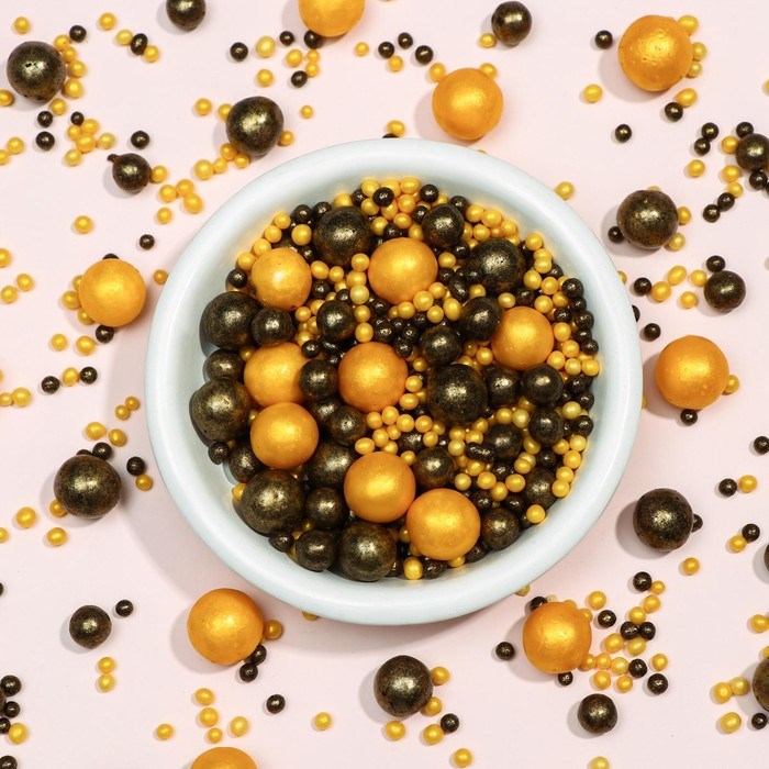 Кондитерская посыпка с мягким центром «Жемчуг»: золотая, бронзовая, 50гр