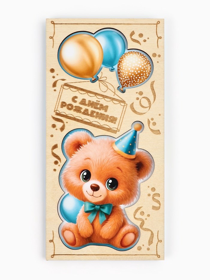 Конверт д/денег деревянный «С днём рождения», мишка, 16.5*8см