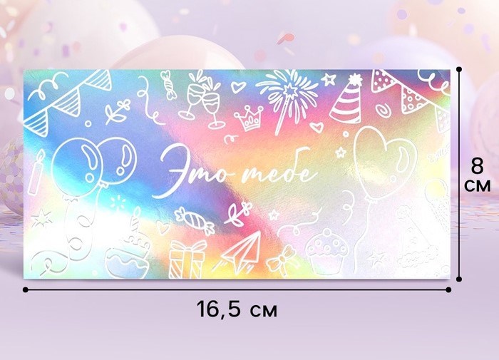 Конверт д/денег «Это тебе», голография, торт и шары, 16.5*8см