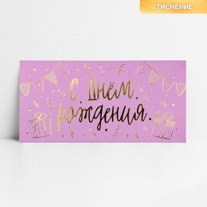 Конверт д/денег «С днём рождения», тиснение, 16.5*8см