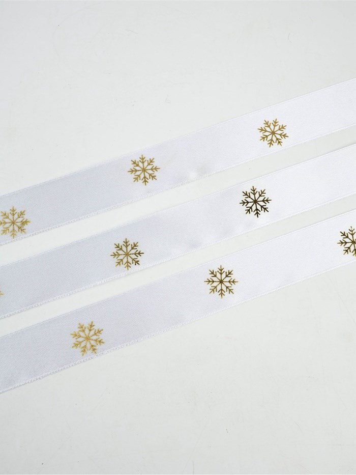 Лента атласная с тиснением «Снежинки», 25мм, 1м, белая