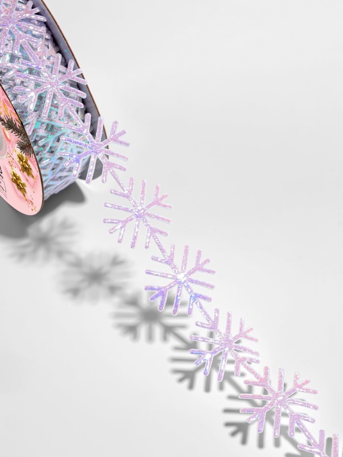 Лента декоративная, фигурная «Сверкающие снежинки» 22мм, 1м, с голографией