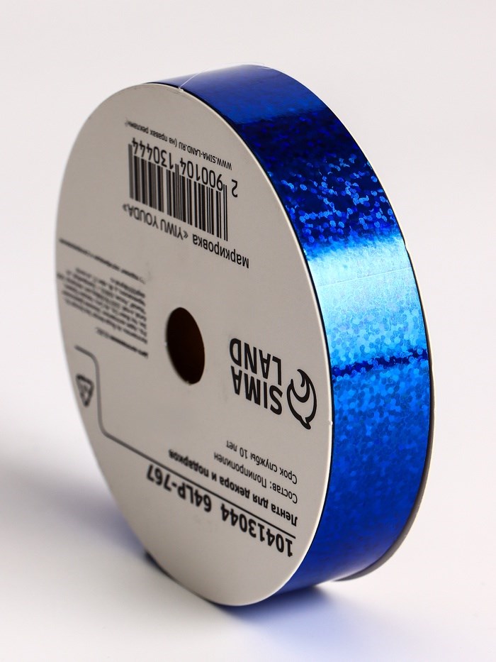 Лента голографическая д/декора и подарков, синяя, 2см*50м