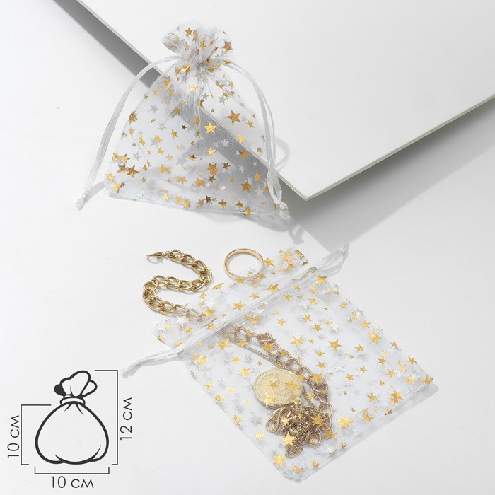 Мешочек подарочный «Звёздная россыпь», 10*12см, цв белый с золотом