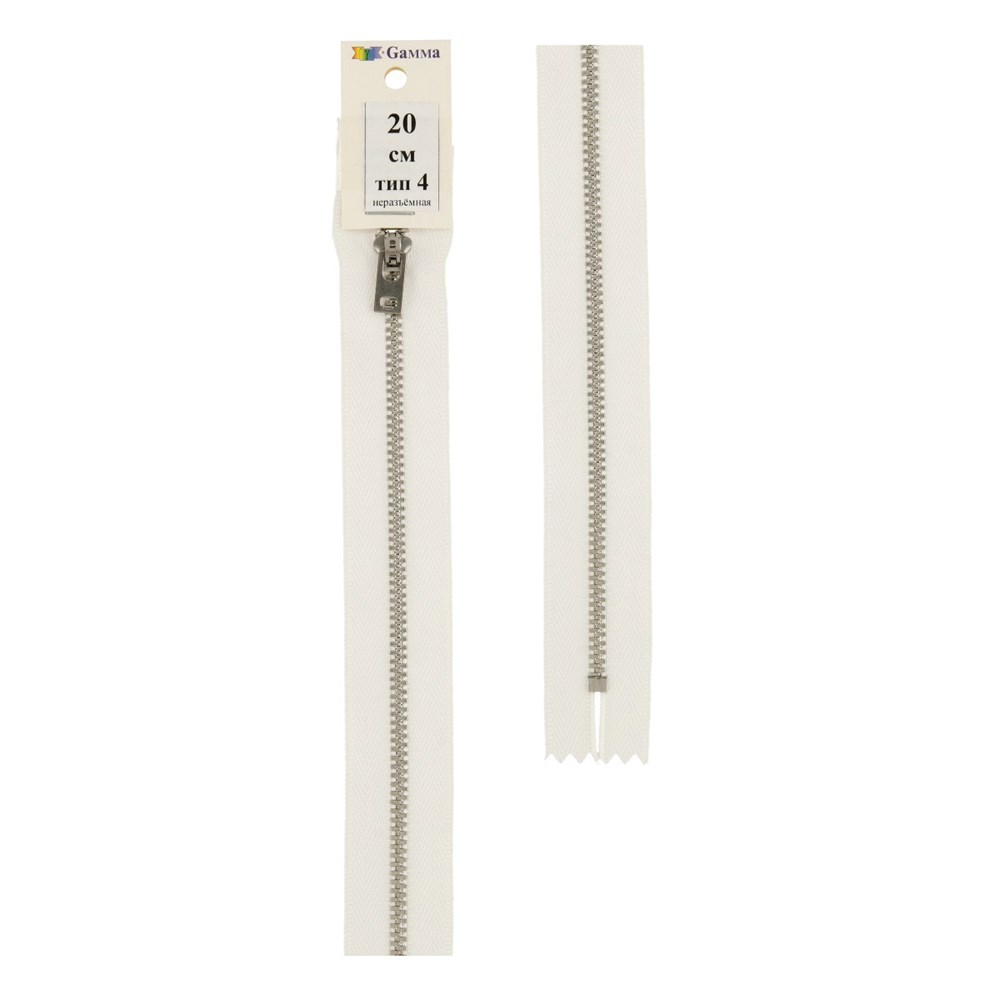 Молния Металл JIN 4N 20 см никель № 3 Тип 4 "Gamma" №101 белый