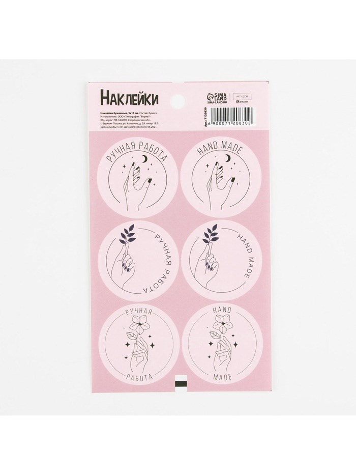 Наклейки д/бизнеса и подарков Hand made, 9*16см