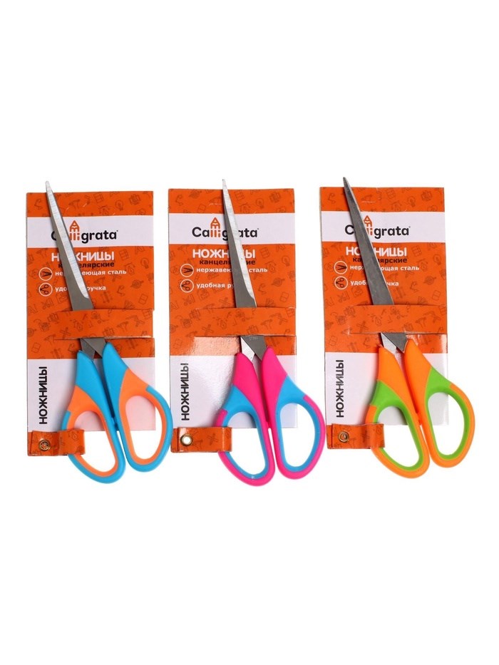Ножницы канцелярские 17.5см, ручки пластиковые с резиновыми вставками, МИКС 1шт