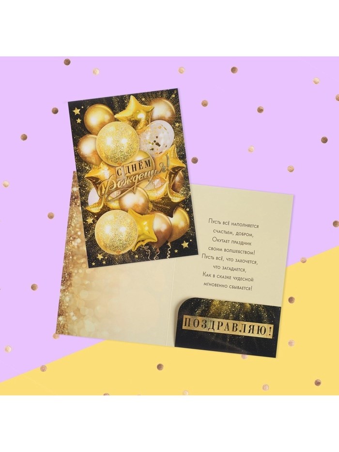 Открытка с карманом д/денег «Золотые шары», 19*29см