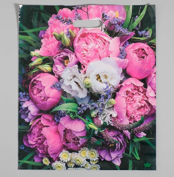 Пакет «Пионы», полиэтиленовый с вырубной ручкой, 38*45см, 60мкм