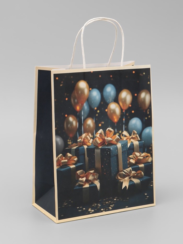Пакет подарочный крафтовый «Подарки с золотым бантом» 27*22*11см, 120г/м²