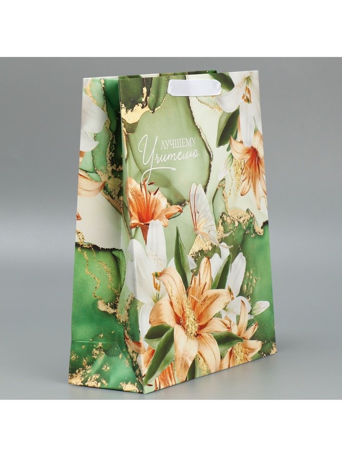 Пакет подарочный ламинированный, «Лучшему учителю», M 30*26*9см