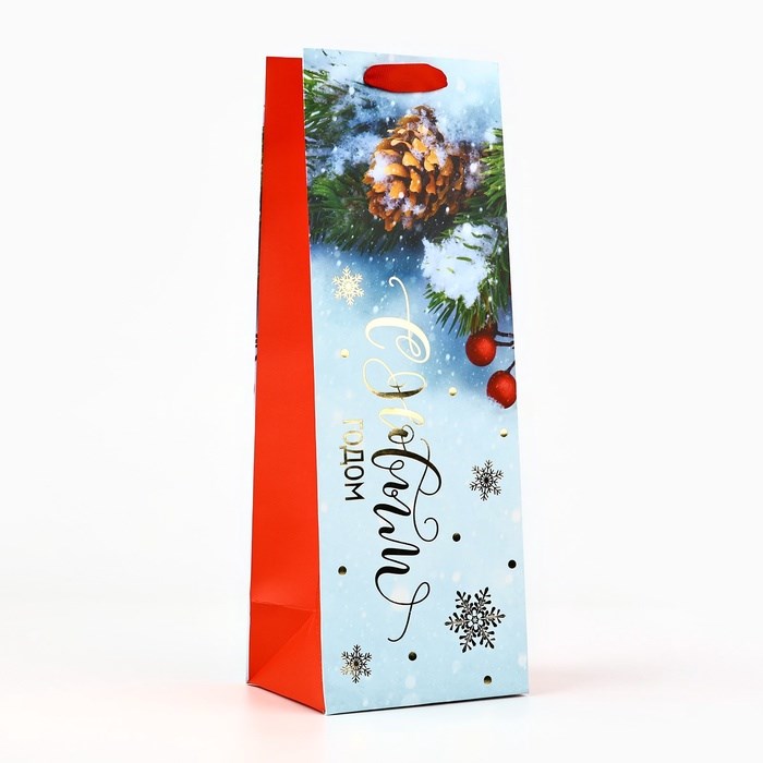 Пакет подарочный ламинированный под бутылку «Снежный лес», 13*36*10см
