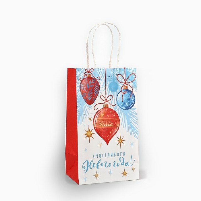 Пакет подарочный новогодний крафтовый «Счастливого Нового года», 12*9*21см