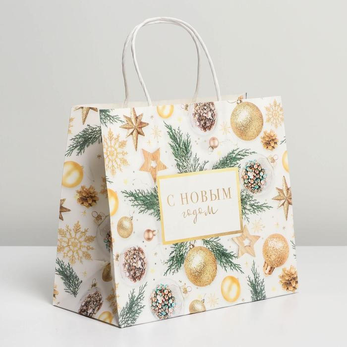 Пакет подарочный новогодний крафтовый «Сказочный праздник», 25*22*12см
