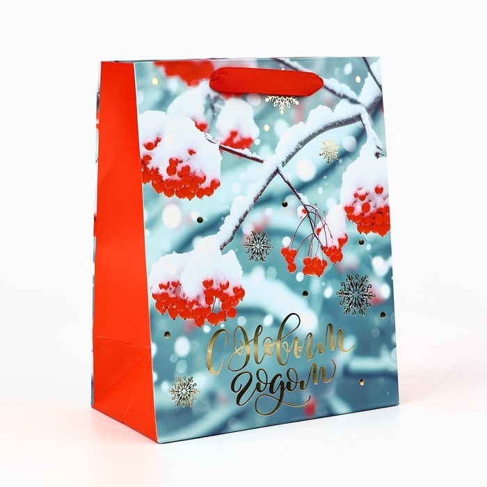 Пакет подарочный новогодний ламинированный «Рябина», MS 23*18*10см