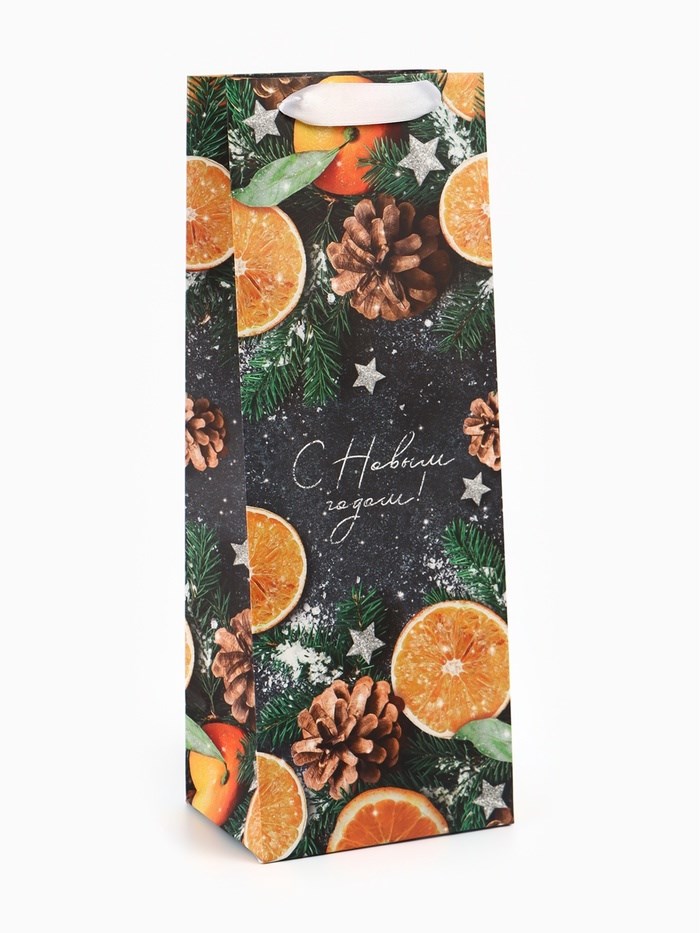 Пакет подарочный под бутылку крафтовый «Новогоднее настроение», 13*35*10см