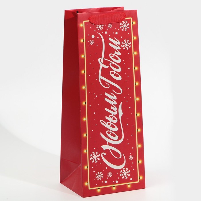 Пакет подарочный под бутылку «С Новым годом!», 13*35*10см