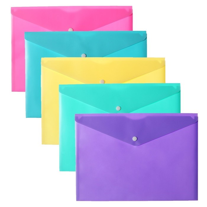 Папка-конверт на кнопке А4, 180мкм, Calligrata Pastel, глянцевая, полупрозрачная, микс 1шт