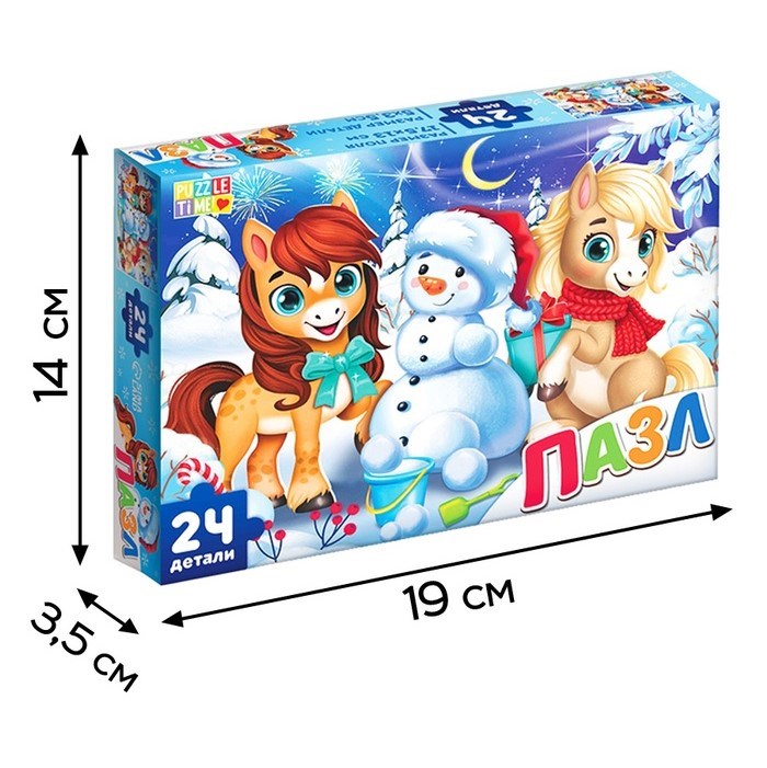 Пазл «Новогодние забавы лошадок», 24 детали, большая коробка