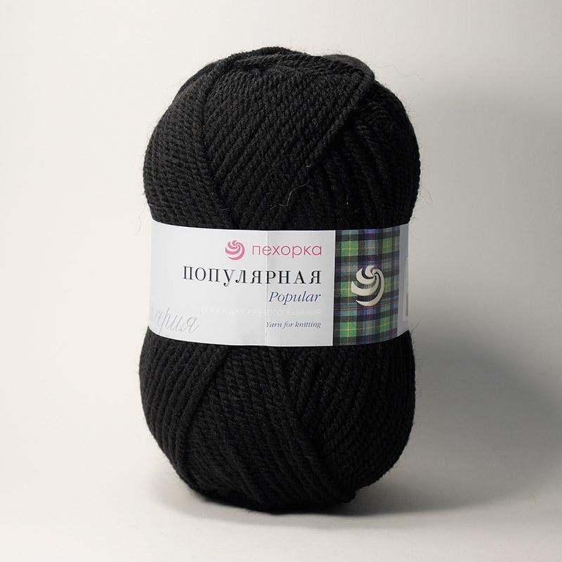 Пехорка Популярная 100гр 50% шерсть/50% акрил высокообъёмный цвет 02 Черный