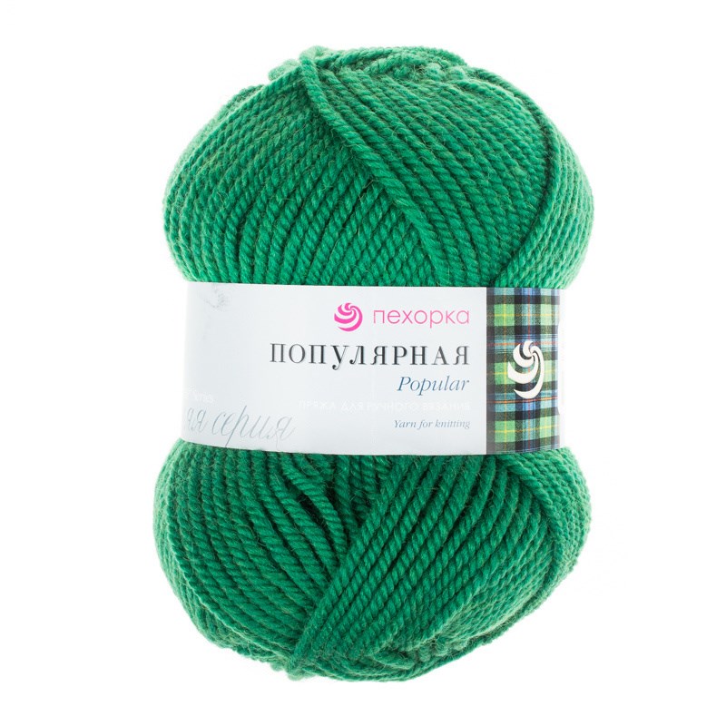 Пехорка Популярная 100гр 50% шерсть/50% акрил высокообъёмный цвет 480 Яр. зелень