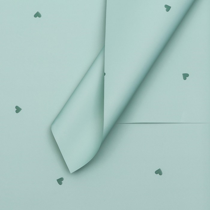 Пленка д/цветов и букетов, 57*57см, «Сердечки», зелёная, 65мкм