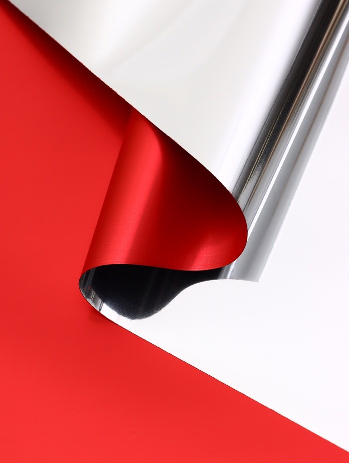 Пленка д/цветов, «Серебряная сторона», красный, 57*57см