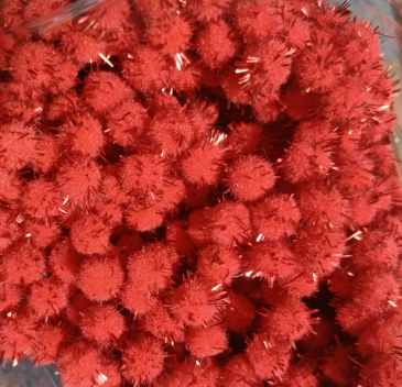 помпоны акриловые с люрексом 1 см 5 гр (70-90 шт) красный
