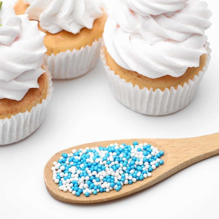 Посыпка кондитерская с мягким центром «Бисер»: белая, голубая, 50гр