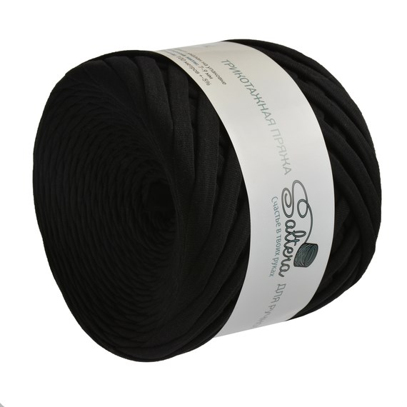 Пряжа трикотажная Saltera ЦВЕТ: ЧЁРНЫЙ (02) 100% хлопок 100м/ширина нити 7-9мм