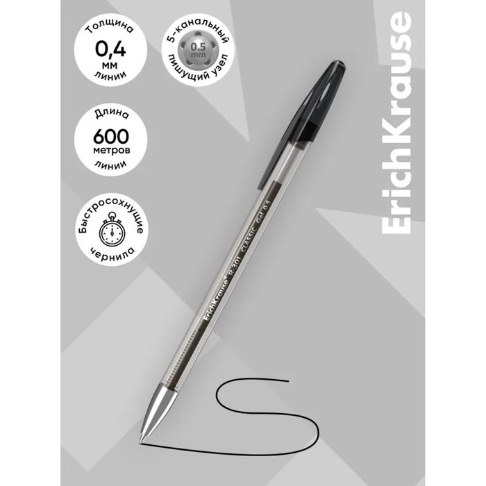 Ручка гелевая ErichKrause. R-301 Classic Gel Stick, чёрный стержень, узел 0.5мм, для ОГЭ и ЕГЭ