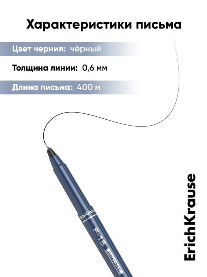 ручка капиллярная черная 0,6мм 400м F-15 Erich Krause